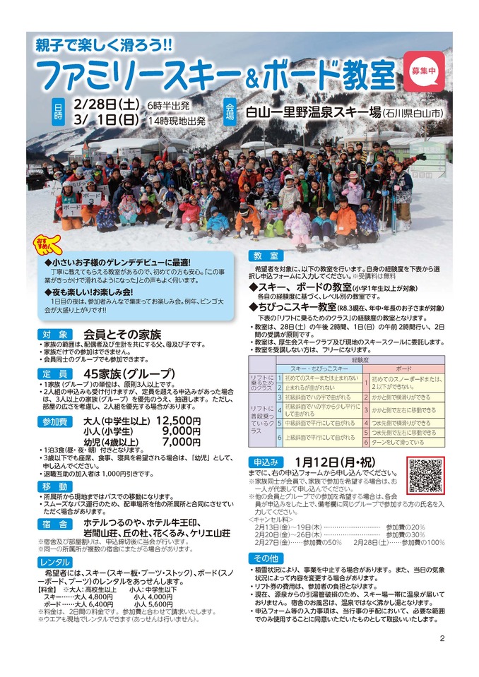 ファミリースキー&ボード教室を開催します
